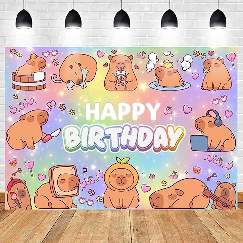 Capybara Happy Birthday Backdrop for Capybara Party Decorations Cute Capybara Theme Photography Background Capybara Theme Party Supplies Banner 7x5ft