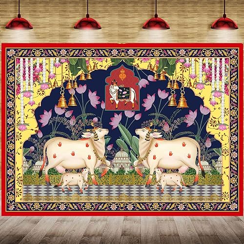 Pichwai Backdrop 8x6FT Orange Diwali Festival Photo Background