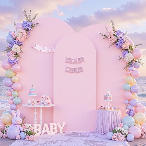 【Dreamlike Pastel Arch Backdrop Cover Set】This arch backdrop cover set of 3 includes 7.2ft purple arch cover, 6.6ft blue arch backdrop cover, and 6ft baby pink arch cover; it adopts innovative same-color design to create a pastel rainbow effect; this arch cover stretchy backdrop is very suitable for wedding background decoration and arch photo background, creating an elegant and romantic atmosphere (metal arch frame not included)