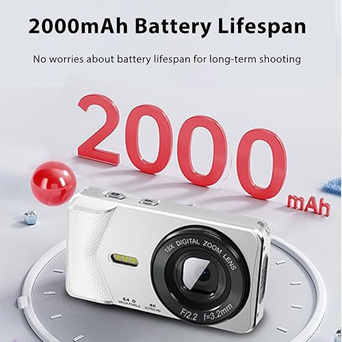 64MP 4K Digital Camera with 18X Zoom - Pink Compact(White)