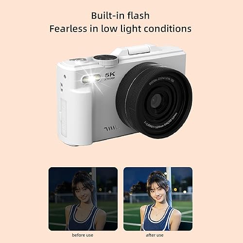 5K Ultra HD Video: This camera can record every detail with 5K ultra HD recording and 75MP photos. Whether traveling or daily photo taking, it presents movie level quality to record clear moments more vividly.